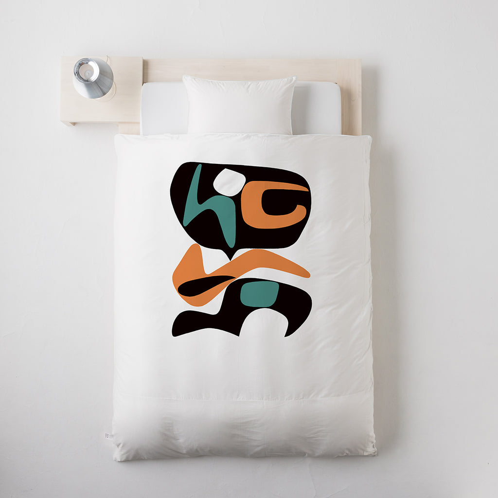 表参道布団店の商品「白く清潔な掛け布団カバー」に高精細プリンターでアーティストの作品をプリントしました。
