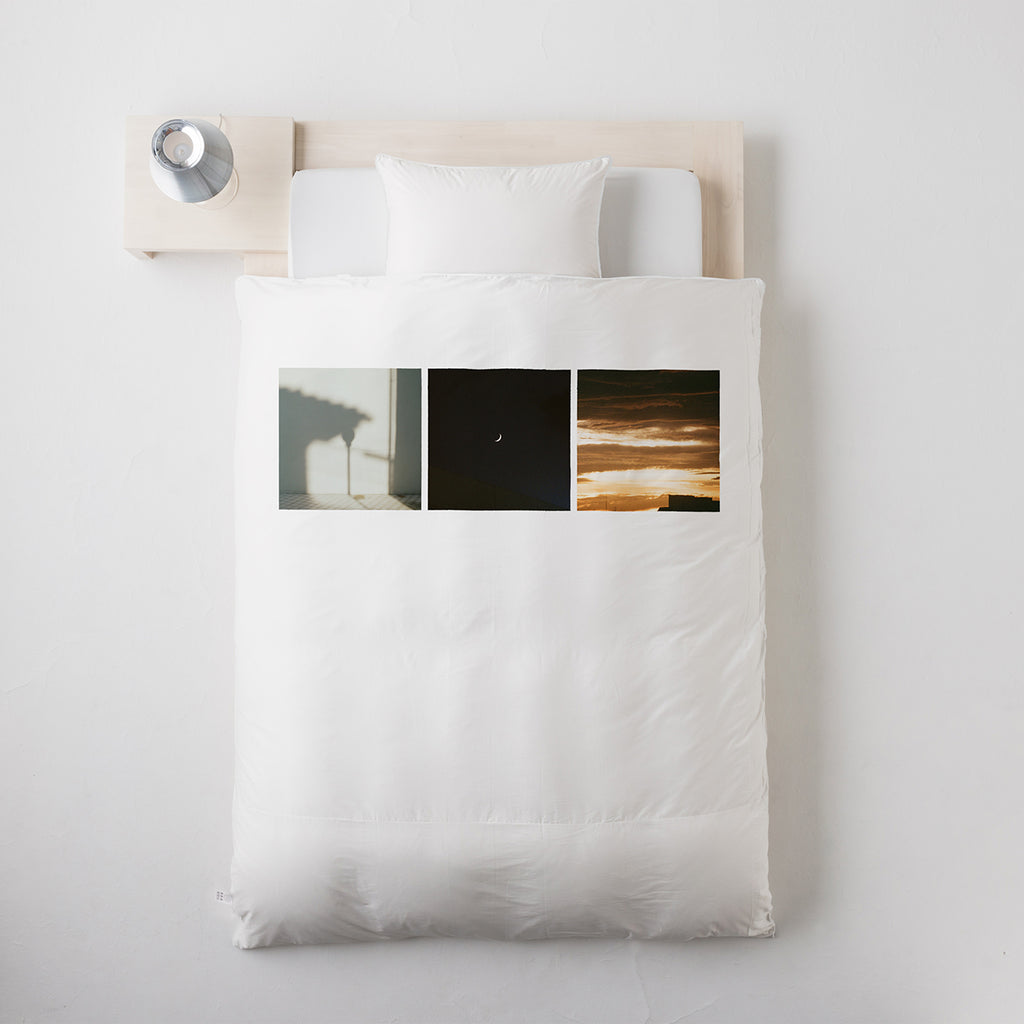 表参道布団店の商品「白く清潔な掛け布団カバー」に高精細プリンターでアーティストの作品をプリントしました。