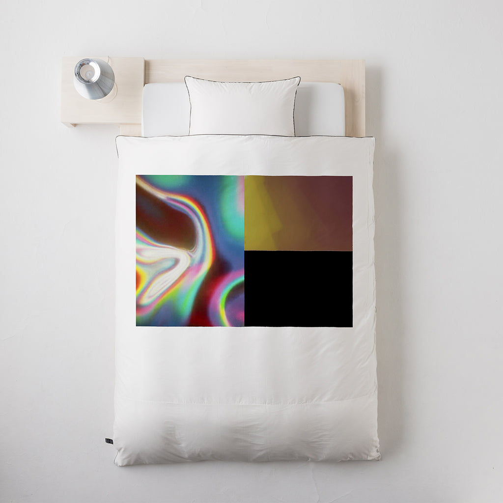 表参道布団店の商品「白く清潔な掛け布団カバー」に高精細プリンターでアーティストの作品をプリントしました。